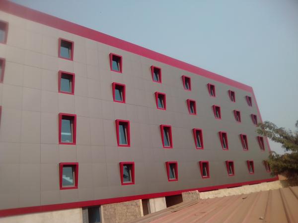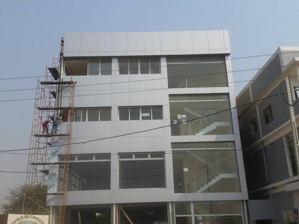 Trabalhos de Revestimento de fachada em painel de alumínio compósito e caixilharia de alumínio e vidro.
