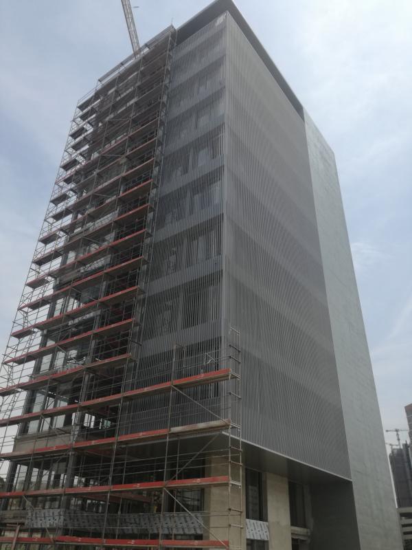 Caixilharia de alumínio e vidro, revestimento de fachada ventilada em Painel Compósito de alumínio e revestimento em lâminas de sombreamento